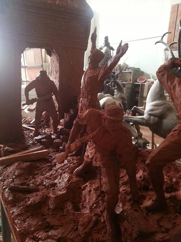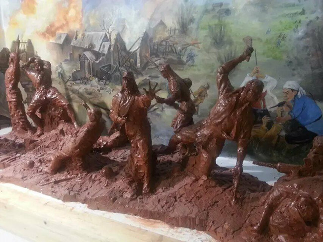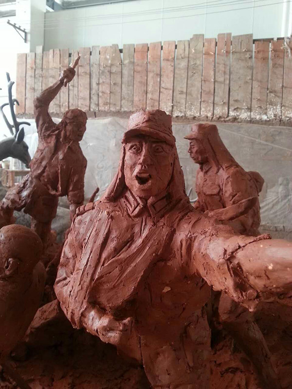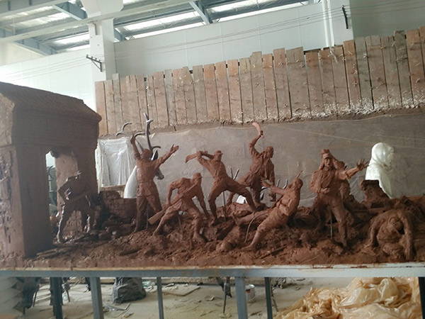 抗戰紀念館花墻門大刀戰雕塑泥塑