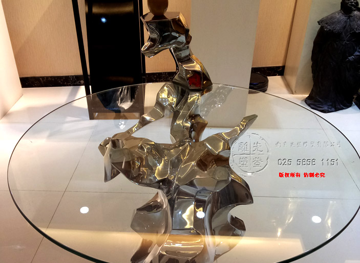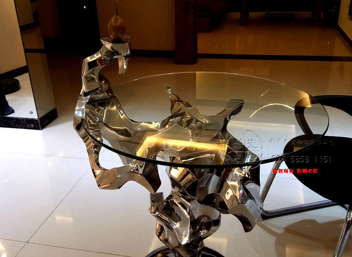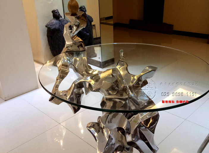 不銹鋼鏡面光圓桌太湖石個性藝術桌子玻璃圓桌
